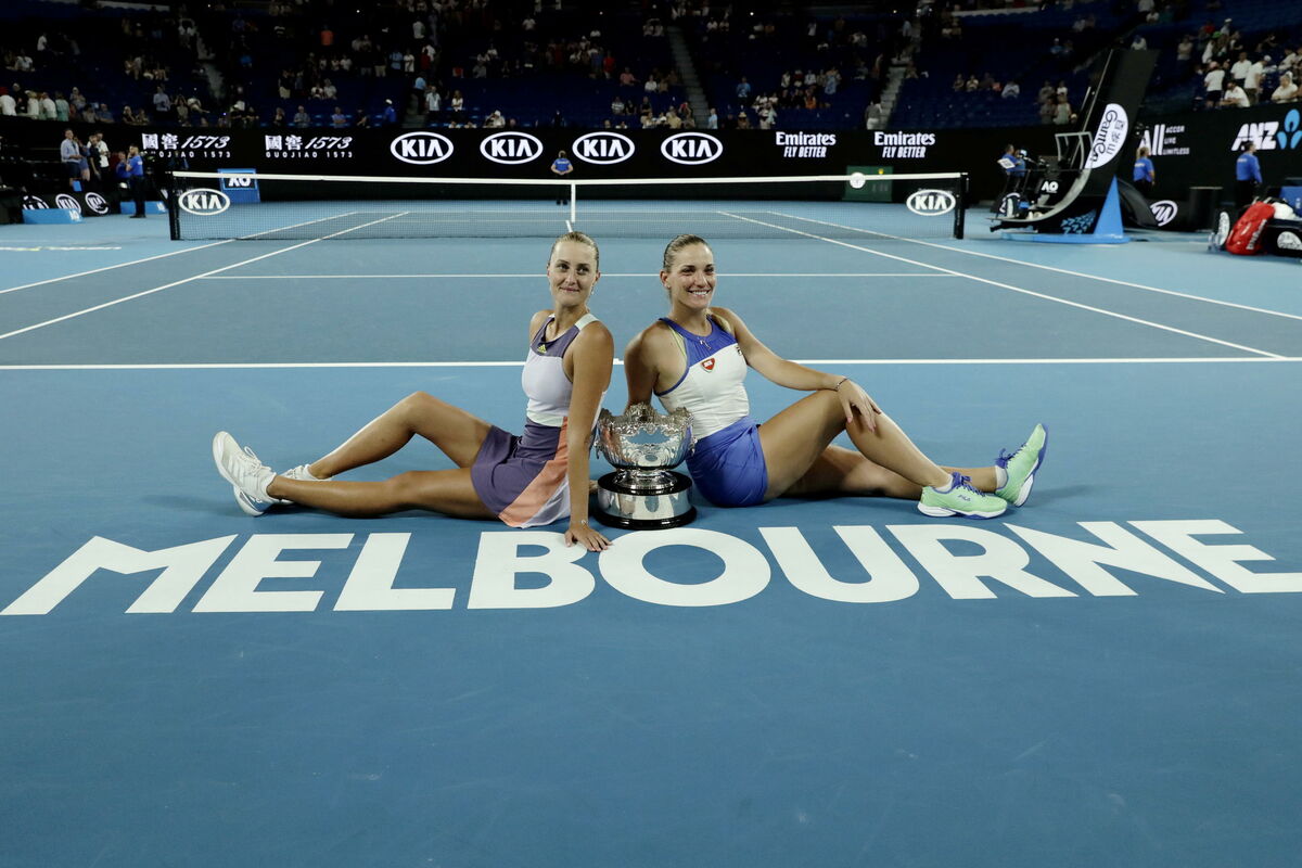 Ovo je za Mladenović (inače devojka Dominika Tima) i Baboš druga titula na Australijan openu u poslednje tri godine.