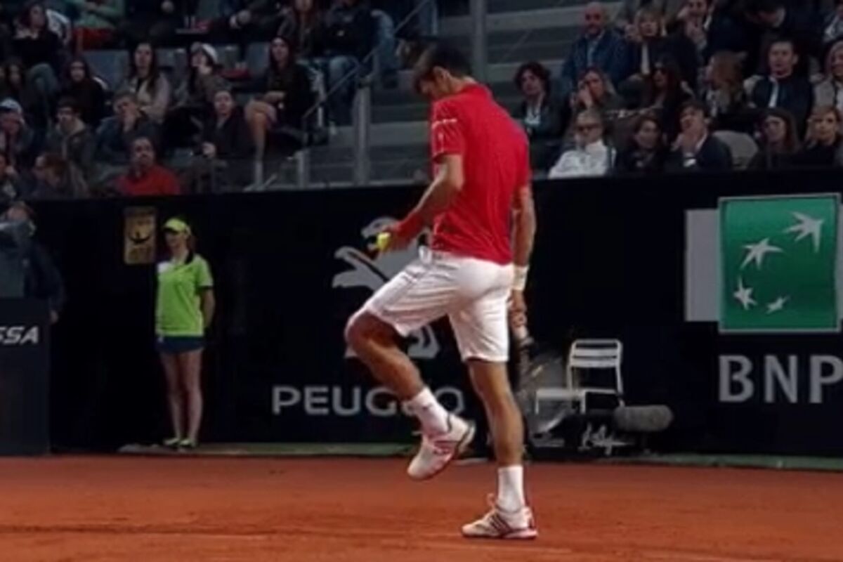 Prvi reket sveta Novak Đoković je nastavio sa neobičnim izdanjima na turniru u Rimu. Nova bizarna situacija se odigrala kada je srpski teniser uobičajenim potezom pokušao da skine zemlju sa patike u prvom setu na meču polufinala sa Nišikorijem.