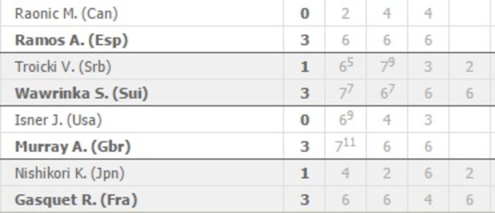 Nažalost, srpski teniser Viktor Troicki nije uspeo da napravi senzaciju i izbaci aktuelnog šampiona Stena Vavrinku i pored hrabre igre koju je pružio uz probleme sa povredom. Švajcarac je pobedio u četiri seta - 3:1 (7:6, 6:7, 6:4, 6:2)