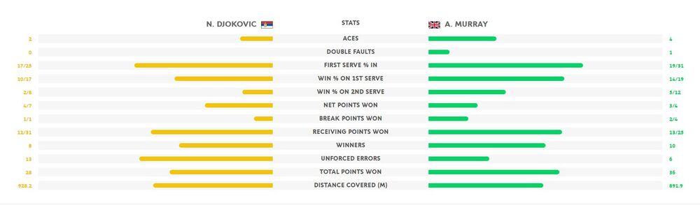 na terenu tokom turnira proveo 12 sati i 55 minuta, dok je Mari igrao 17 sati i 49 minuta