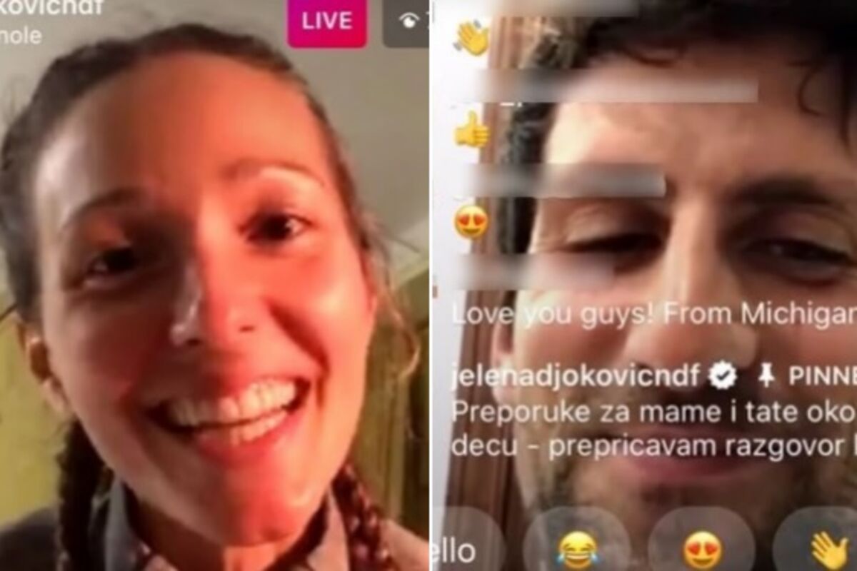 Jelena Đoković uključila se večeras putem "lajva" na Instagramu u razgovor sa pratiocima na ovoj društvenoj mreži, a u jednom momentu stigao joj je zahtev od supruga Novaka, sa sprata iznad onog na kom se ona nalazila, pa je isti sa oduševljenjem prihvatila.