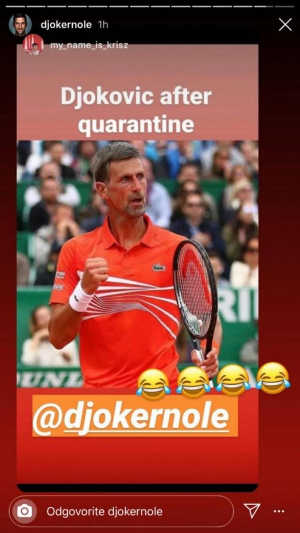 Nole se očigledo već dobro zabavlja, pošto je na svoj "stori" okačio fotku koju je napravio jedan od njegovih oboćavalaca. "Kako je Đoković ostario u izolaciji" je tema ove fotografije.