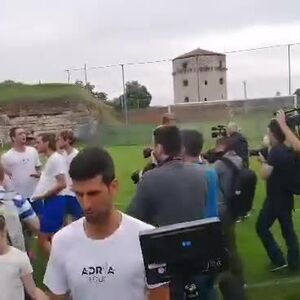 Završen je fudbalski meč na Dorćolu u kojem su koplja ukrstili tim sastavljen od tenisera koji učestvuju na Adria Touru i prijatelja Novaka Đokovića i umetnička reprezentacija.