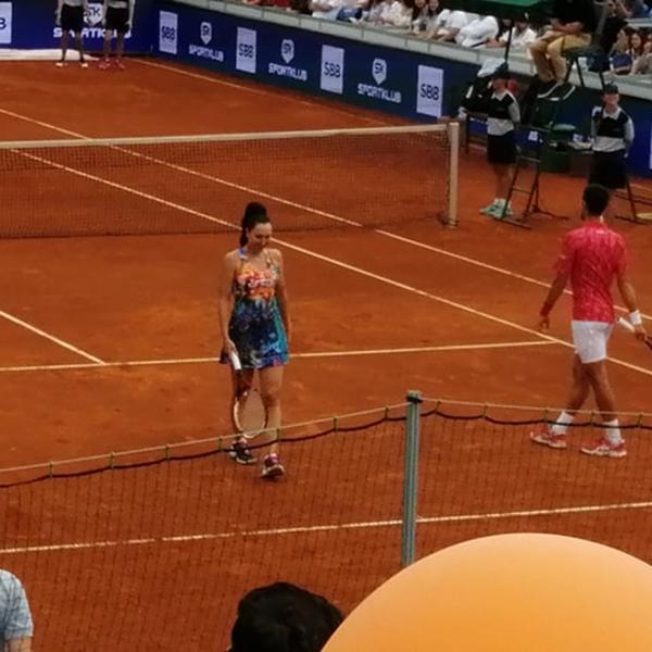 0:3 - Novi gem osvajaju Nole i Jeca i to na njen servis. Nije joj preterano "zakržljao" taj deo igre, koji, ruku na srce, nikada i nije bio njeno najjače oružje. Naravno, svaki poen propraćen je sa osmesima, šalama...