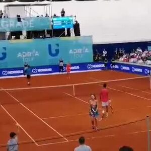 Kako je i najavljeno, prvi meč na Adria touru bio je miks dubl i nastupili su Novak Đoković i Jelena Janković naspram kojih su stajali Nenad Zimonjić i Olga Danilović, a igrao se jedan set na 6 dobijenih gemova. Tačnije, sedam, jer su Nole i Jeca rešili pitanje pobednika u taj-brejku.