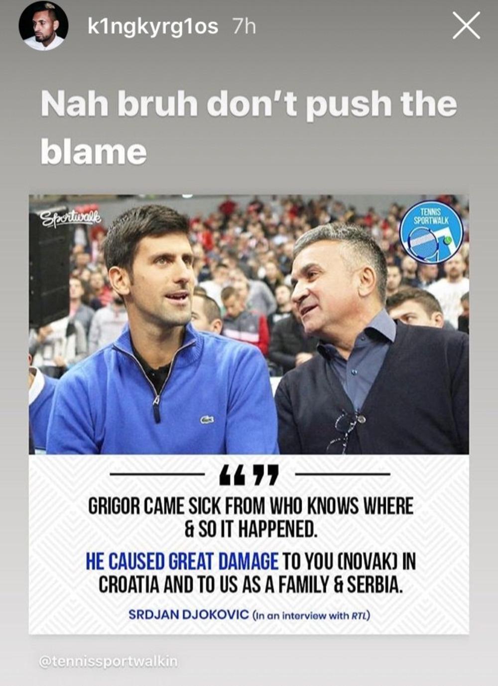 Nik Kirjos kada god može napadne porodicu Đoković, pa je tako i ovoga puta iskoristio priliku da komentariše izjavu oca srpskog tenisera.