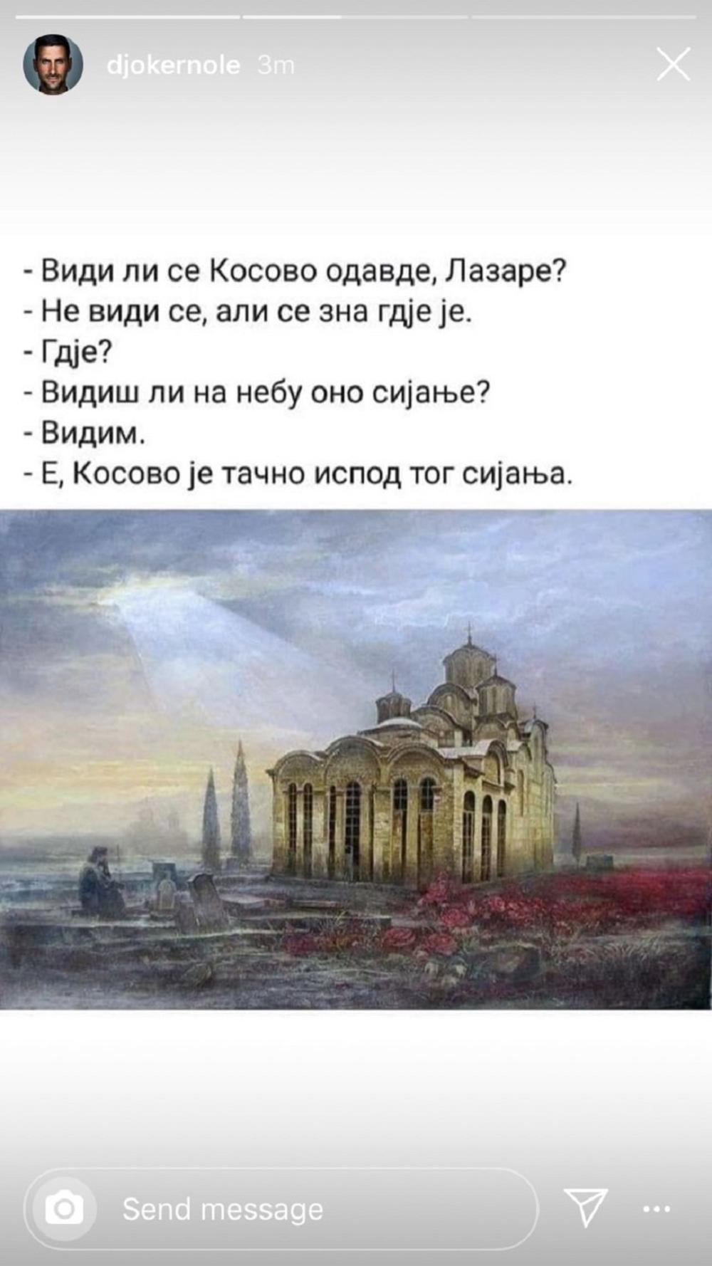 Novak ĐokovićPatrijarh PavlePrnjavorSa Kosova zora svićeInstastoriInstagramInstastori Novaka ĐokovićaVidovdan