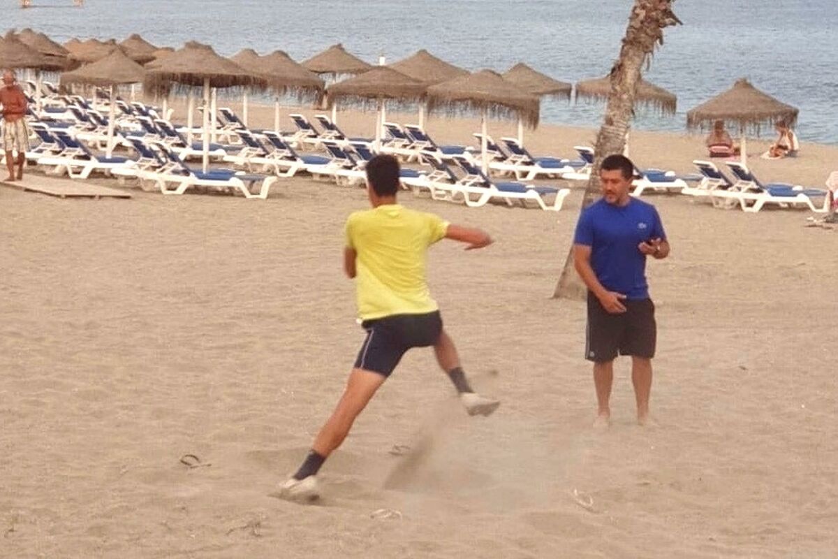 Paparaci u Španiji su zabeležili fotografije Novakovog kondicionog treninga na plaži, gde je radio sa svojim trenerom Ulisesom Badiom.