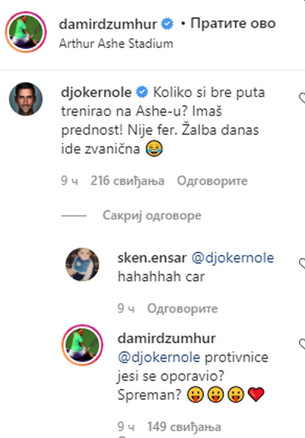 - Koliko si bre puta trenirao na Ešu-u? Imaš prednost! Nije fer. Žalba danas ide zvanična - poručio je Đoković, a Džumhur mu je odmah odgovorio: