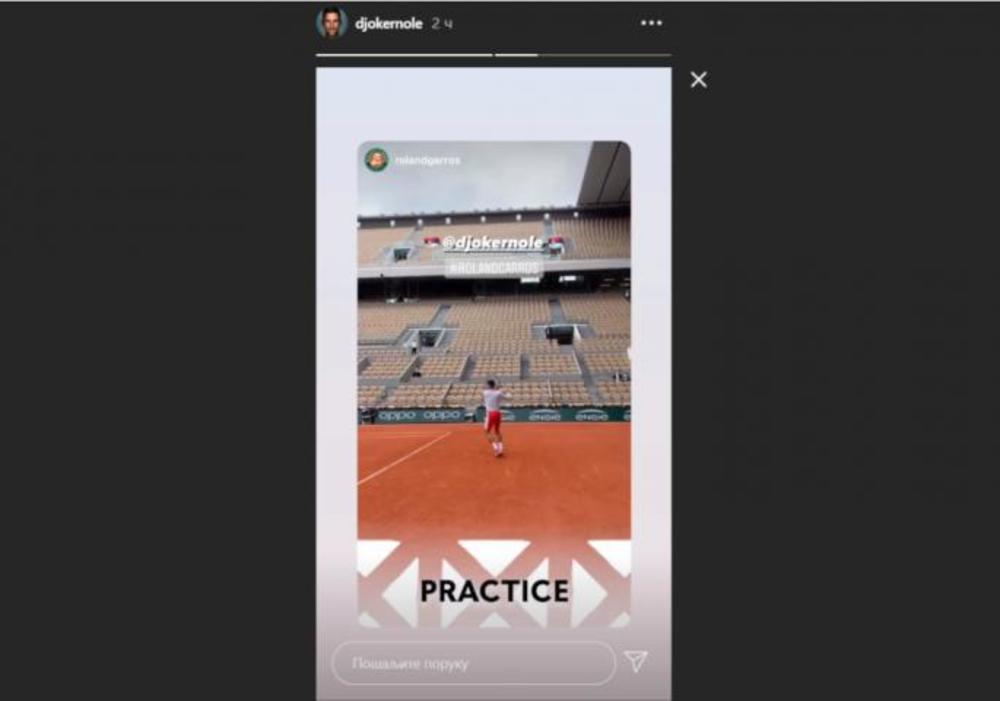 Nole je ranije istrčao na francusku šljaku da se zagreje dok je čekao kraj meča Nadal - Švarcman, a na storiju okačio snimak. Tako to rade pravi šampioni - ne staje sa treningom.