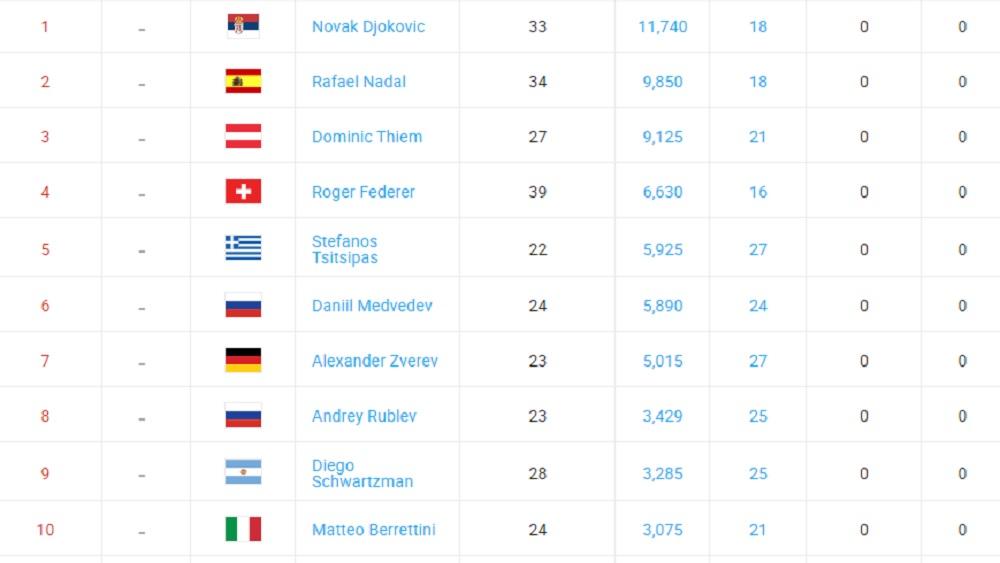 Srpski teniser ima 11.740 bodova i ubedljvo vodi, ispred Rafaela Nadala, Dominika Tima i Rodžera Federera.