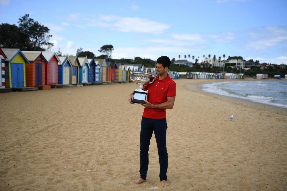 Srpski teniser Novak Đoković je nakon osvajanja 18. Gren slema u karijeri i devetog na Australijan openu, prošetao sa istim po najpoznatijoj plaži u Melburnu, Brajton.