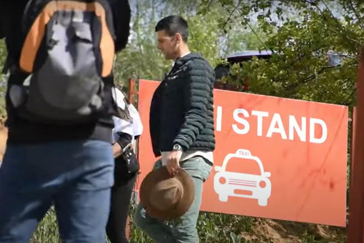 Odmah po dolasku u Arheološki park Ravne 2, Novak Đoković se pripremio za šetnju sa Osmanagićem. Ovaj put je takođe nosio kaubojski šešir poput svog domaćina, a za šetnju je imao i odgovarajuće čizme.