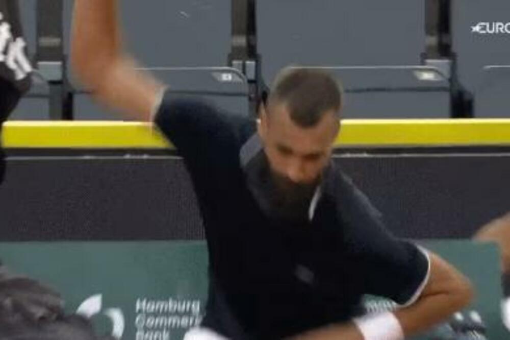 Francuski teniser Benoa Per je zaustavljen u četvrtfinalu ATP turnira u Hamburgu, a nervozu zbog razvoja meča je po ko zna koji put iskazao ispadom.
