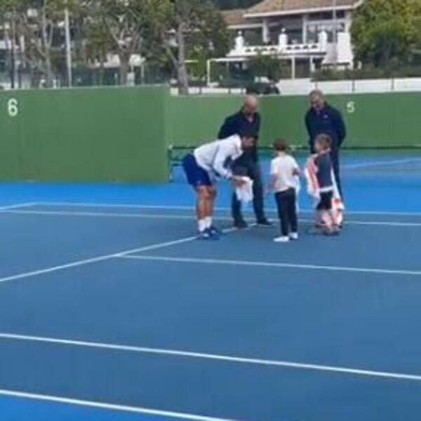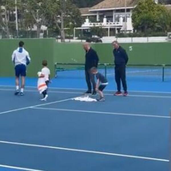 Uhvaćen je Novak Đoković u Španiji kako lagano džogira, a sada je izašao i zanimljiv snimak gde pronalazi vremena i da otkrije male tajne velikog majstora sinu Stefanu i još jednom mališanu.