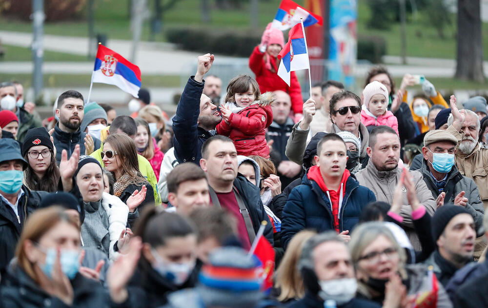 15.05 - Okupljeni skandiraju "Nole, Nole...". Očekuje se obraćanje Srđana Đokovića.