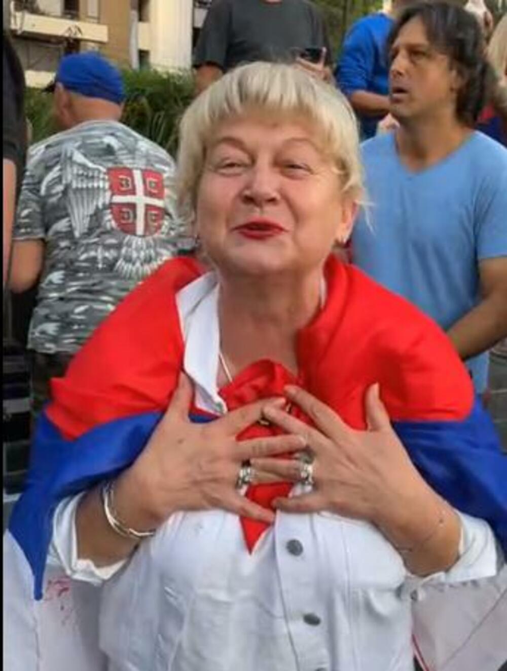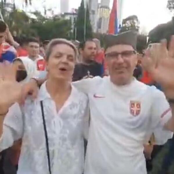 Muzika ponovo trešti, ovoga puta sa zvučnika koje su Novakovi navijači doneli na protest, a igra se i srpsko kolo. Tu je sada već prepoznatljiva navijačica sa guslama, šajkače, zastave...