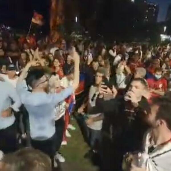 A ta podrška je neprestana i kako je pao mrak kao da se samo pojačava, što možete videti na priloženom snimku prenosa uživo.