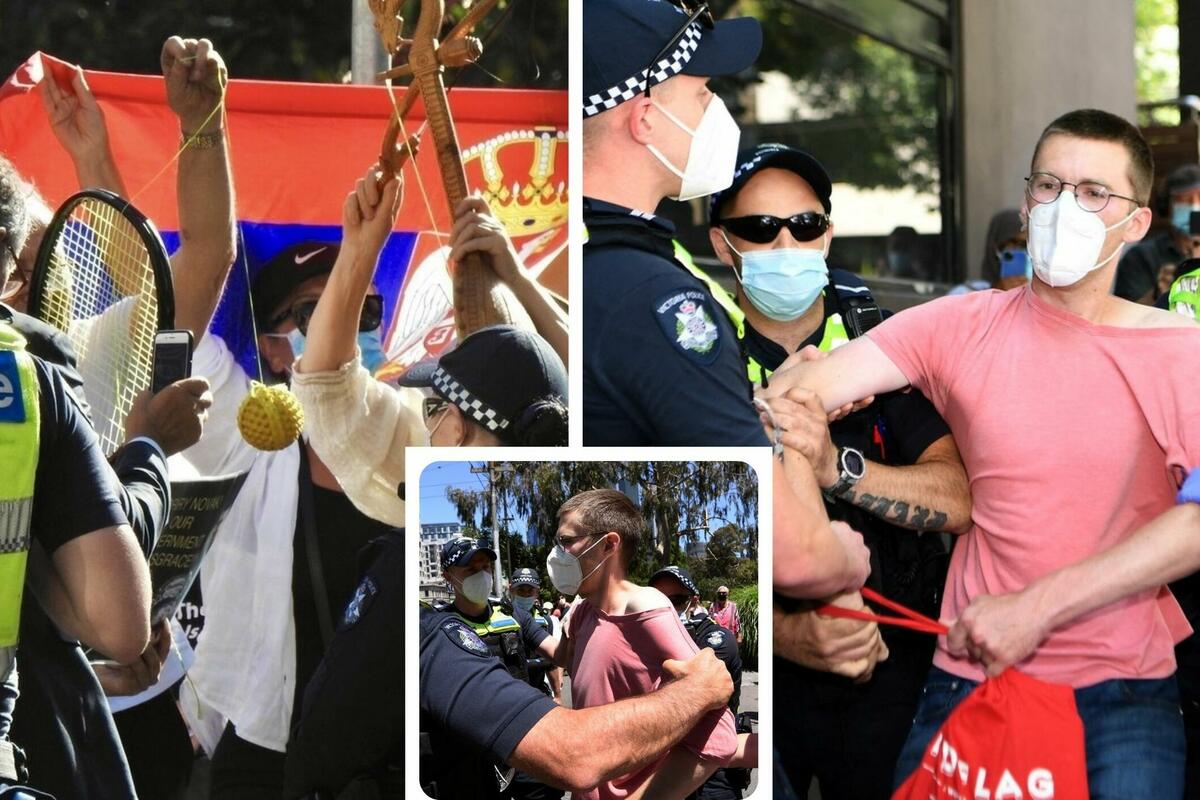 Na tviter profilu novinarke iz Australije Giliani Lantouris osvanli su snimci u kojima je policija počela da se gura i da hapsi demonstrante koji su tu zbog zatočenih izbeglica: