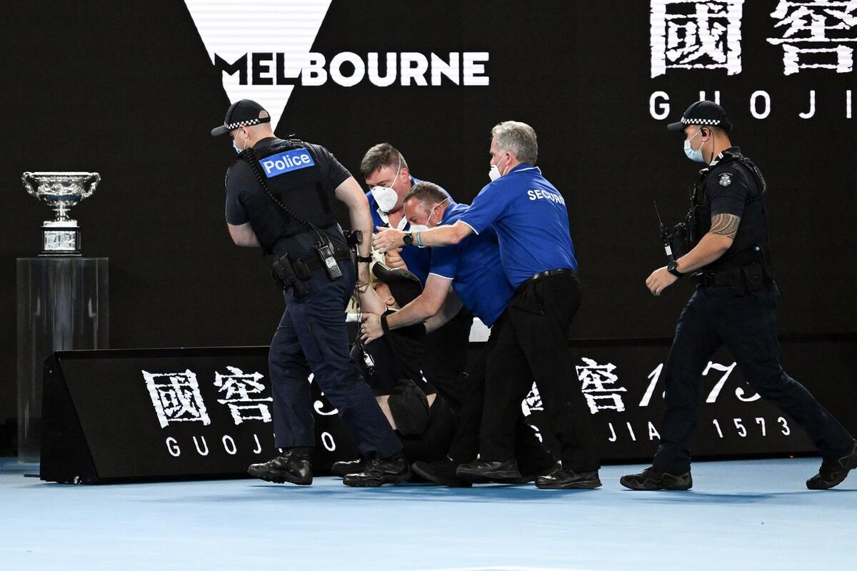 Nju je obezbeđenje vrlo brzo savladalo i bukvalno odvuklo po zemlji sa terena, nakon kraće borbe. Za to vreme, ostali pripadnici službi reda čuvali su Nadala i Medvedeva kako se ne bi ponovio neki sličan eksces.