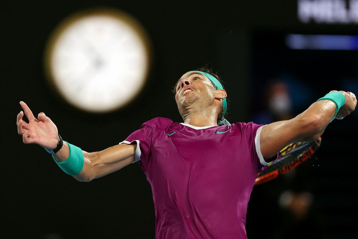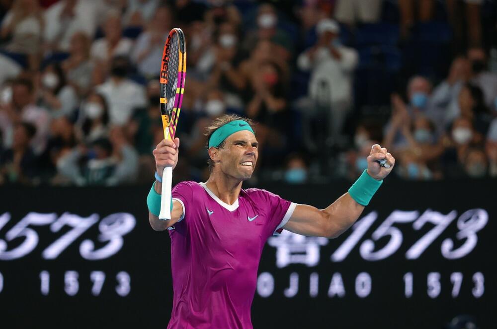 Rafael Nadal bije bitku u finalu Australijan opena protiv deset godina mlađeg Danila Medvedeva. Slika pred vama govori koliki napor ulaže Španac.