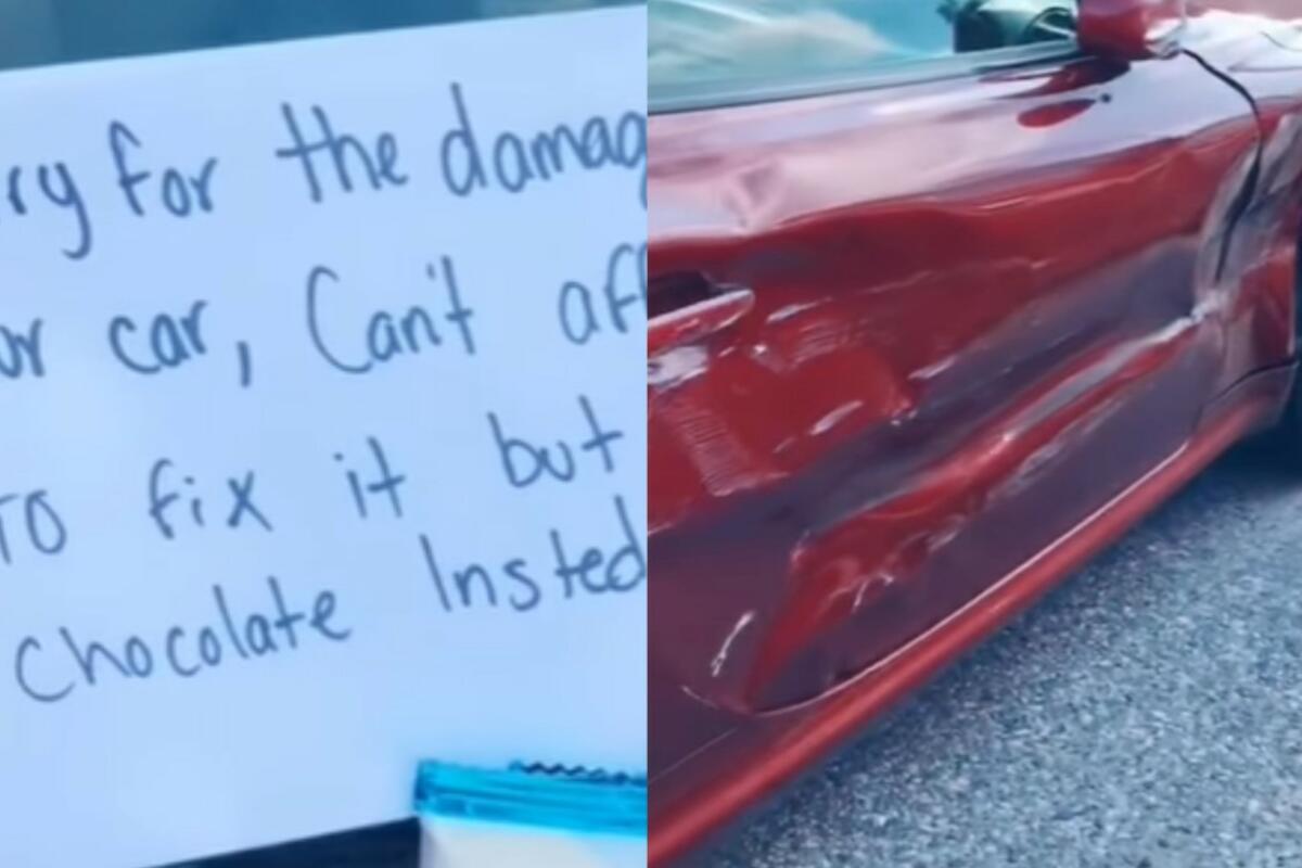 Osoba je, naime, ostavila poruku u kojoj je pisalo: ,,Izvini za štetu na tvom automobilu, nemam novca da ga popravim, ali evo ti čokolada umesto toga."