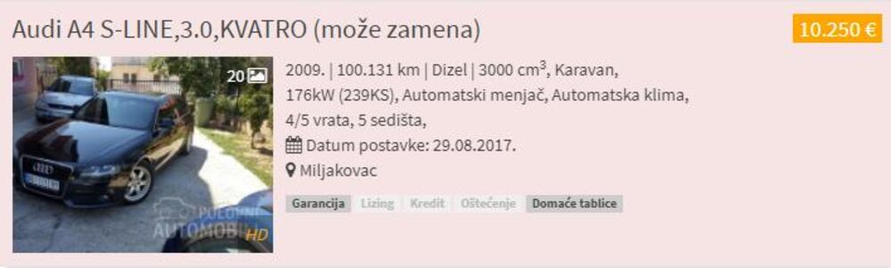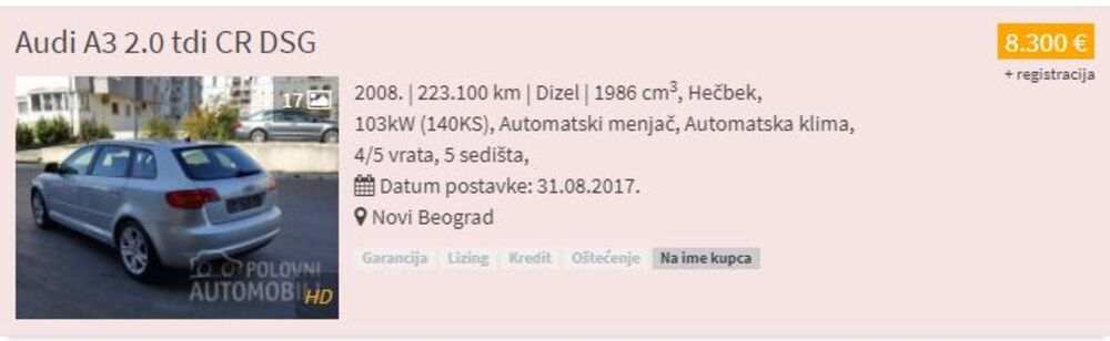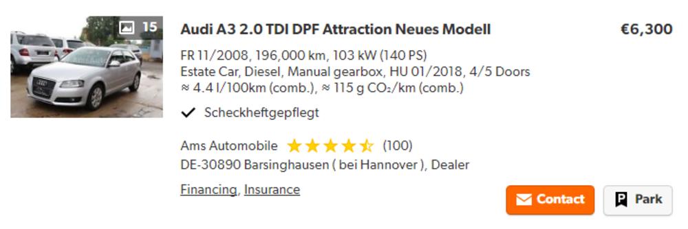 Ipak ima i nešto jeftinijih automobila, a to je Audi A3 verovali ili ne. Kod nas mu je cena oko 8.000 evra sa preko 200.000km, a u Nemačkoj oko 6.500e.