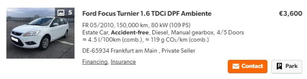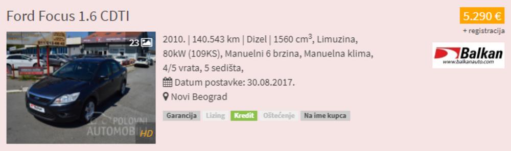 Kao što smo već napisali, trudili smo se da pronađemo zaista automobile koji su slični, odnosno da budu isto godište i da imaju približno pređenu kilometražu. Tako smo pronašli i Ford Fokusa 1.6 koji kod nas u Srbiji iznosi oko 5.300 evra sa 140.000 pređenih kilometara, a u Nemačkoj košta manje 3.600 evra. Ovo je za sada jedini automobil koji je dosta jeftiniji, ali opet je pitanje koliko bi vam se isplatio.