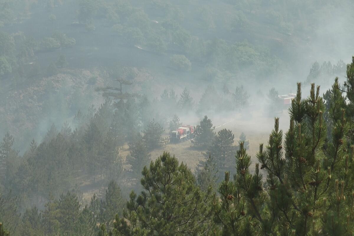 Požarna linija duga je oko kilometar, a gori na 50-ak metara od puta Trebinje-Ljubinje.