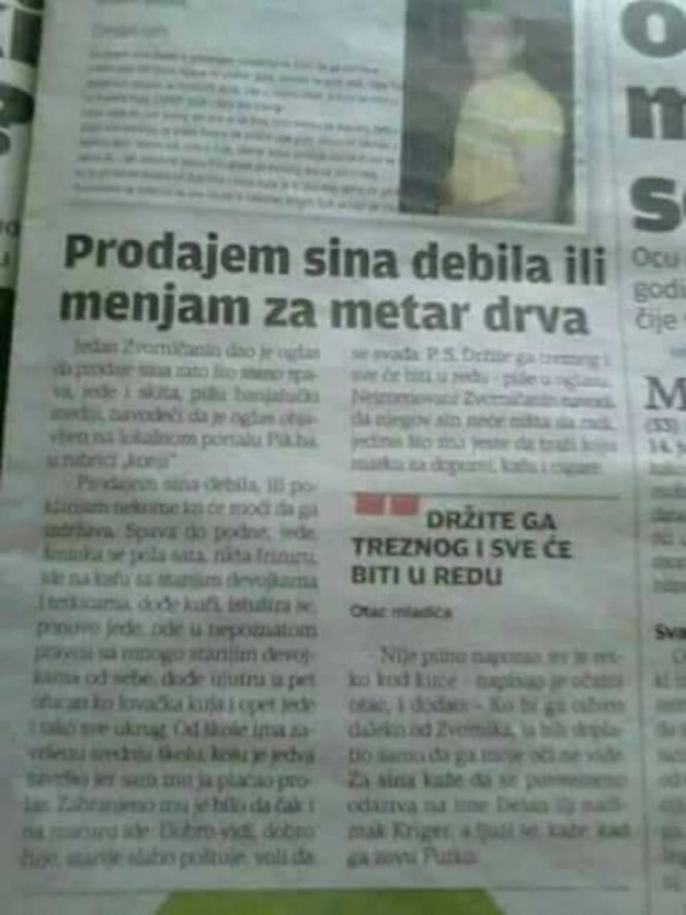 URNEBESAN OGLAS NASMEJAO BALKAN: Menjam sina za metar drva! Ali čekajte - ima i UPUTSTVO ZA UPOTREBU!