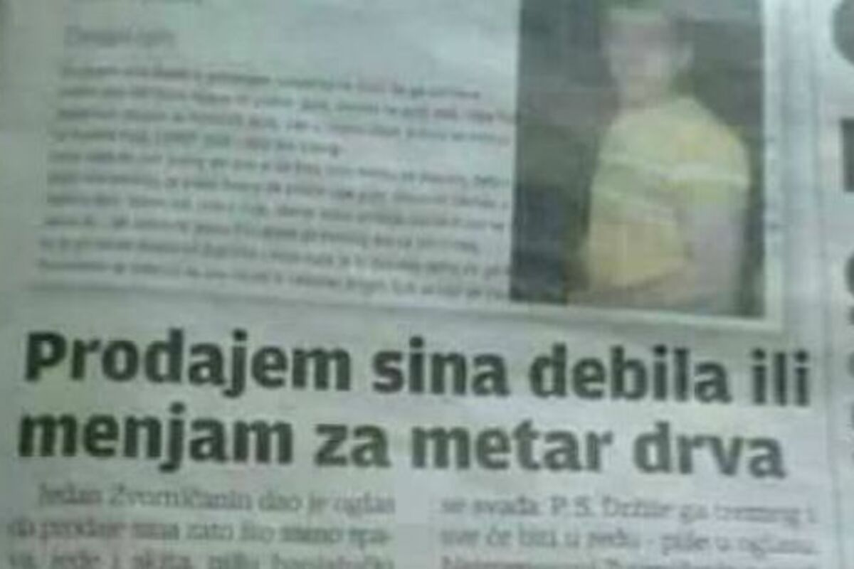 Naime, jedan otac iz Zvornika rešio je da proda svog sina ili da ga zameni za metar drva.