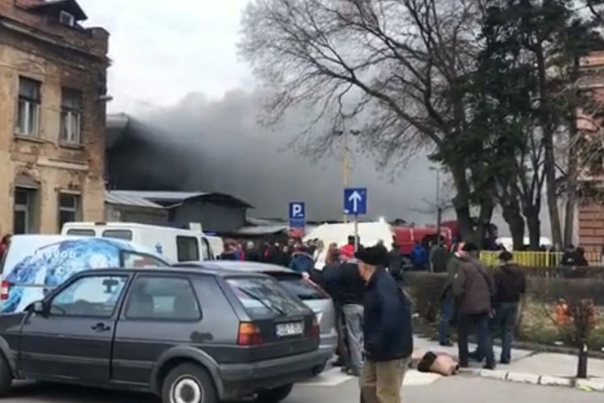 U veoma kratkom vremenskom periodu vatra je zahvatila veći deo tuzlanske pijace, a uzrok izbijanja požara je najverovatnije eksplozija plinskih boca.