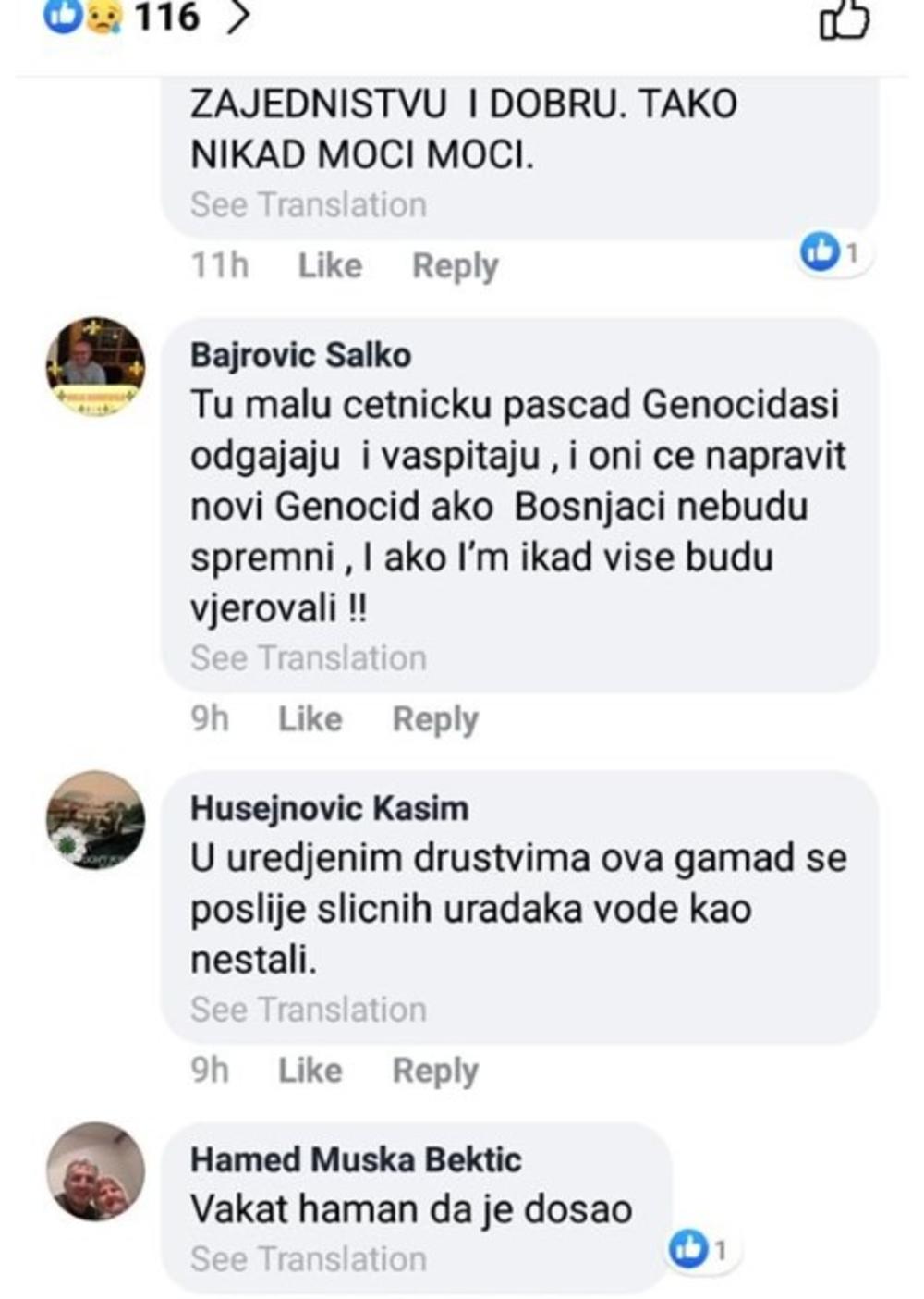 Međutim, komentari nekih Bošnjaka na društvenim mrežama vezanim za ovaj događaj bili su više nego zastrašujući: