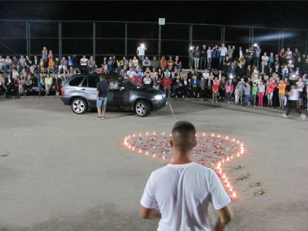 Dok se Emira spremala za izlazak, on je uz pomoć prijatelja od sveća i cveća napravio veliko srce na stadionu, posuto laticama ruža.