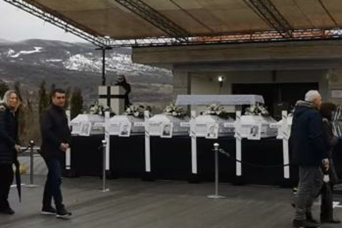 Ispred crkve Svetog Ivana Krstitelja u Rakitnu izlošeni su kovčezi sa telima nastradalih.