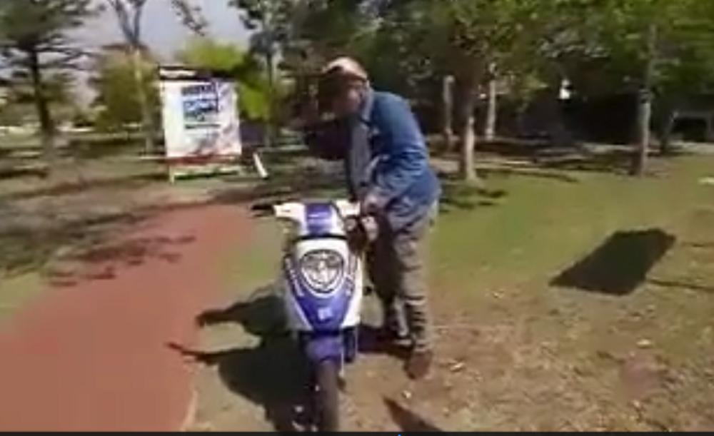 Čovek s ovih prostora nema nikakvu dozvolu za vožnju skutera, ne zna engleski, ili se pravi, a pritom nema ni kacigu na glavi, već nešto što liči na šlem koji nose građevinski radnici.