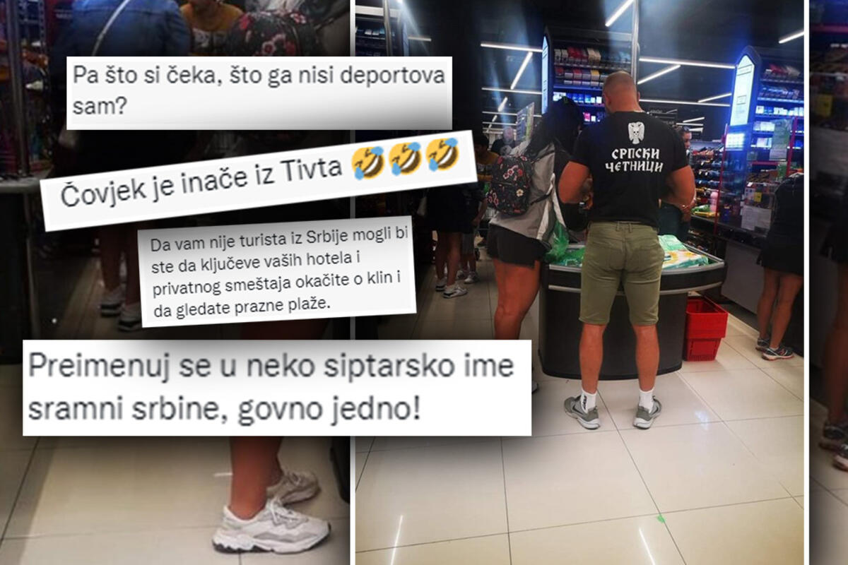 Na fotografiji koja je postala viralna je turista u Tivtu u majici na kojoj ćirilicom piše "srpski četnici".