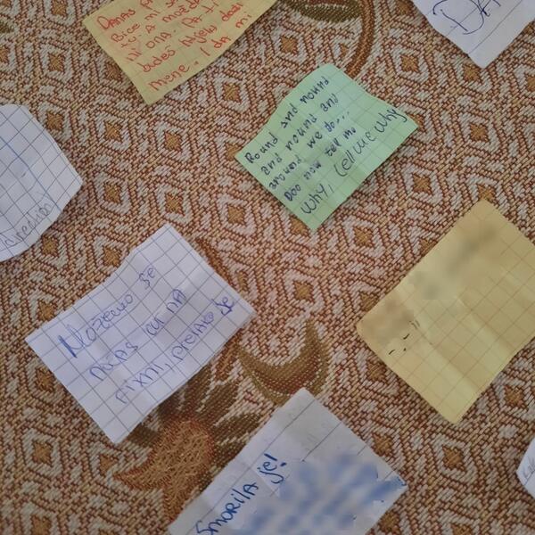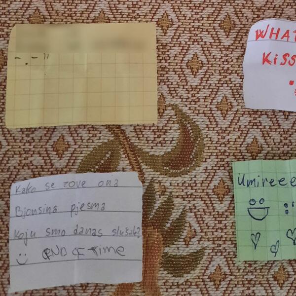 Naši razgovori su, stoga ostali sačuvani na malim šarenim papirićima koje sam svojevremeno pažljivo isekla u pravilne male pravougaonike. Papiriće sam potom uredno složila u jednoj limenoj kutijici od bombona (bila sam ,,zero waste" pre nego što je postao trend) koju sam čuvala u pernici.