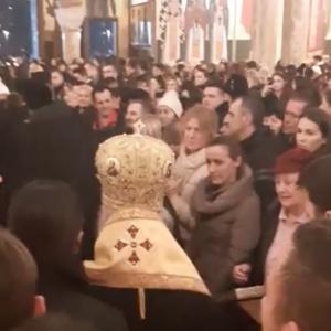 Dok je govorio Amfilohije okupljeni su skandirali "Ne damo svetinje".