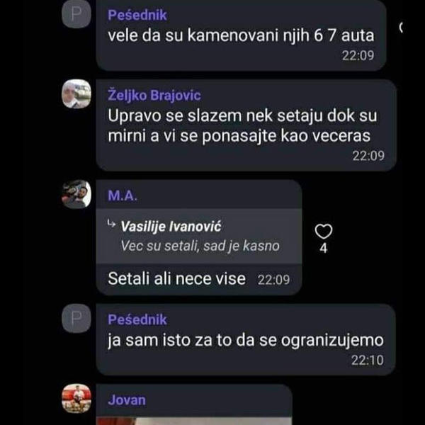 Takođe, navode da se „mogu organizovati da ne bude šetnje“, na šta predsendik DPS koji navodno koristi pseudonim „presjednik“ kaže – „ja sam za to da se organizujemo“.