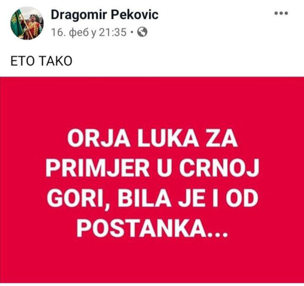 Takođe, kako izvorIn4s-a tvrdi i da policijski službenik Dragomir Peković „na sva usta govori kako se neće šetati Orjom Lukom“. Da je to tačno, vidimo i na osnovu njegovog statusa na Fejsbuku.
