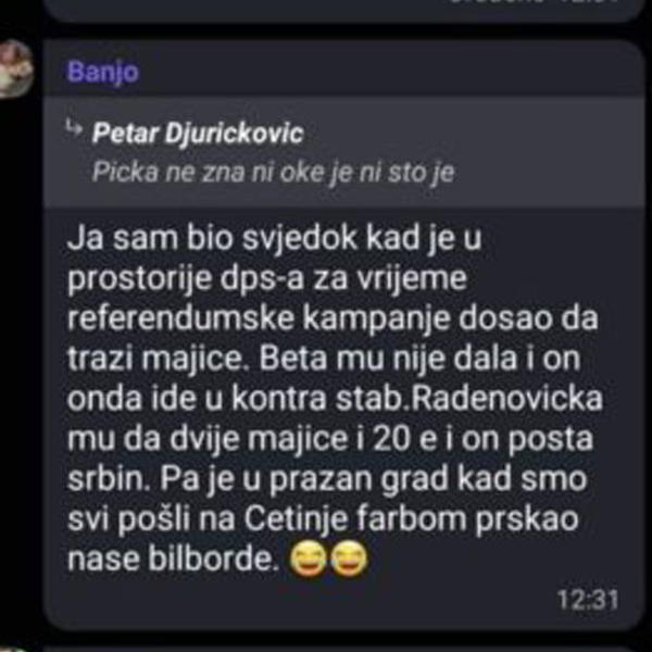 Portal In4s je došao do Vajber prepiske članova OO DPS Danilovgrad i čelnih ljudi te opštine, u kojoj se na pogrdan način razgovara o litijama, o mržnji prema onima koji ne misle kao oni i o incidentu koji se dogodio kod Delte, kada je brutalno pretučen mladić od strane crnogorskih navijača.