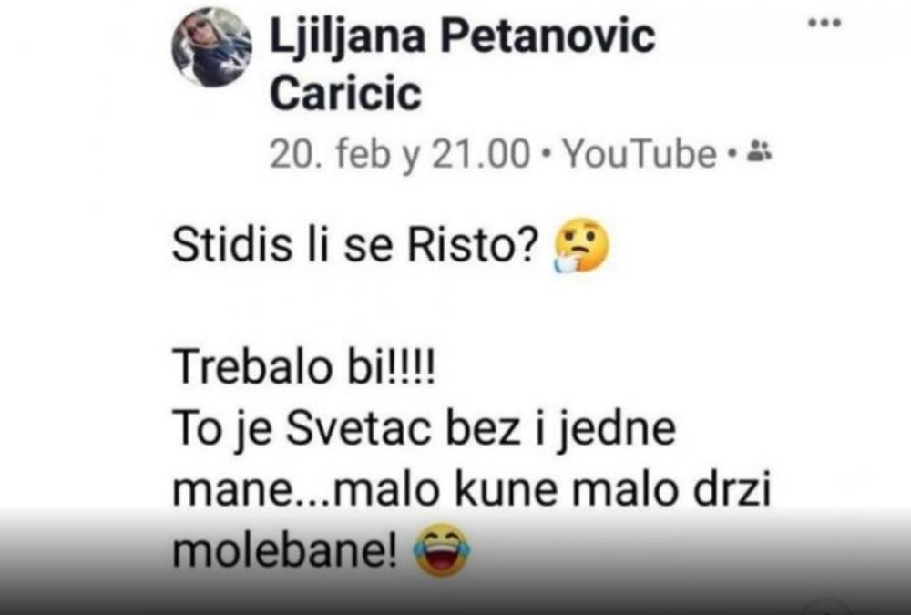 Tako je izvesna Ljiljana Petanović Caričić, službenica Vlade Crne Gore, ovu vest pozdravila rečima: "Kući pa tamo pjevajte. Risto može i sam… Da kune i da raspiruje mržnju!"