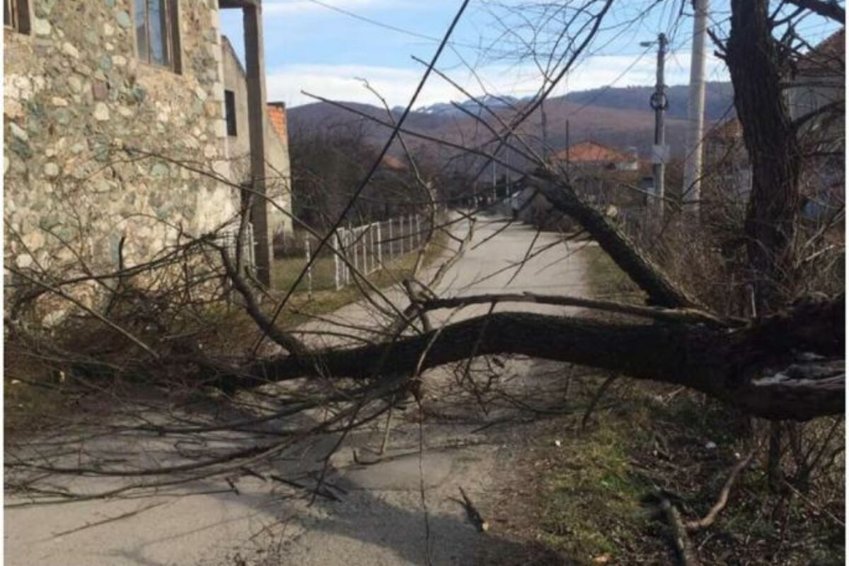 Stabla su porušena u parku u centru grada, kao i u naselju Buče, gde su prekinuti kablovi za struju.