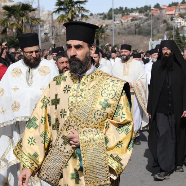 12:15 - Mitropolit kijevski Onufrije koji predvodi litiju se obratio prisutnima. Njegova poseta je i podrška borbi za odbranu svetinja u Crnoj Gori.