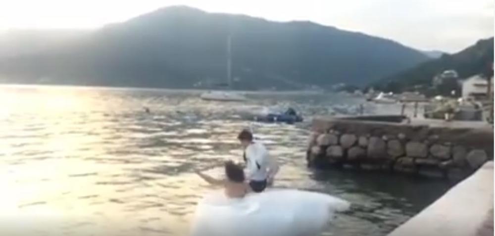 Šokirali sve: Crnogorski mladenci skočili u more (VIDEO)