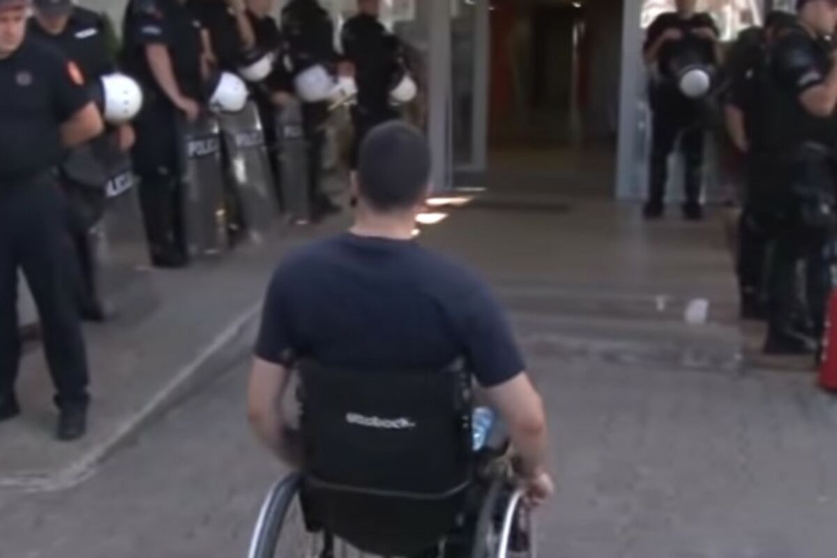 Pred policijskim kordonom našao se i Budvanin Vladan Papan, koji učestvuje u protestima uprkos činjenici da je vezan za kolica.