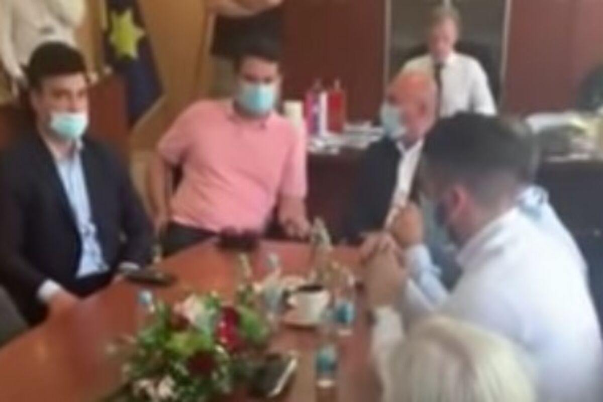 Potom su odbornici Demokrata i DF probili kordon privatnog obezbeđenja koje je angažovao Bulatović, a Carević i ostali čelnici Budve ušli su u kabinet.