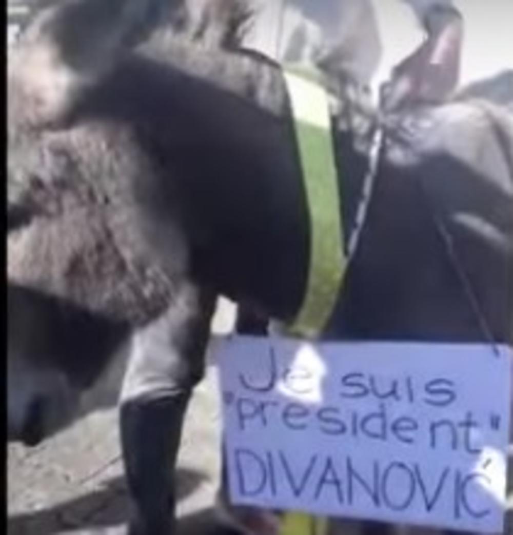 Pošto građani ne mogu da uđu u opštini Budva da ispune svoja građanska prava, bivša urednica RTV Budva Iva Bajković je ispred zgrade Opštine dovela magarca, kojem oko vrata visi natpis „Je suis president Divanovic“.