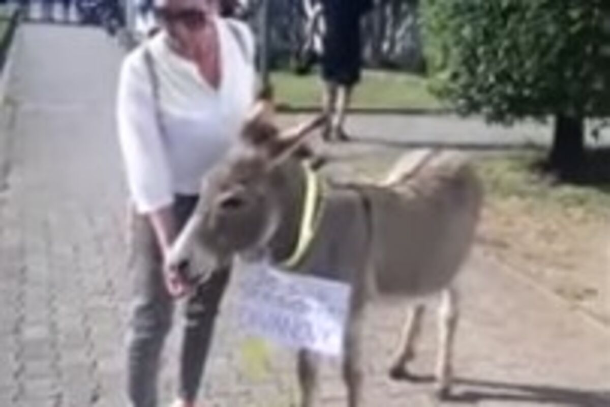 MAGARAC ISPRED OPŠTINE U BUDVI: Na sebi nosi neverovatnu poruku! (VIDEO)